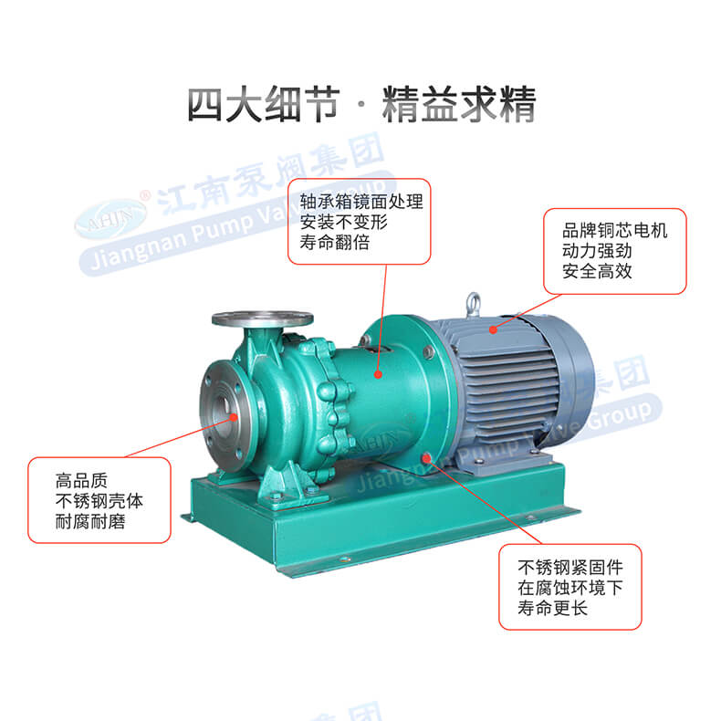 - 安徽江南泵閥制造的不銹鋼磁力泵,耐腐性強(qiáng),高效節(jié)能,耐高溫,磁性強(qiáng),全密封,無泄漏,靜音振低,可代替進(jìn)口等優(yōu)點(diǎn)。