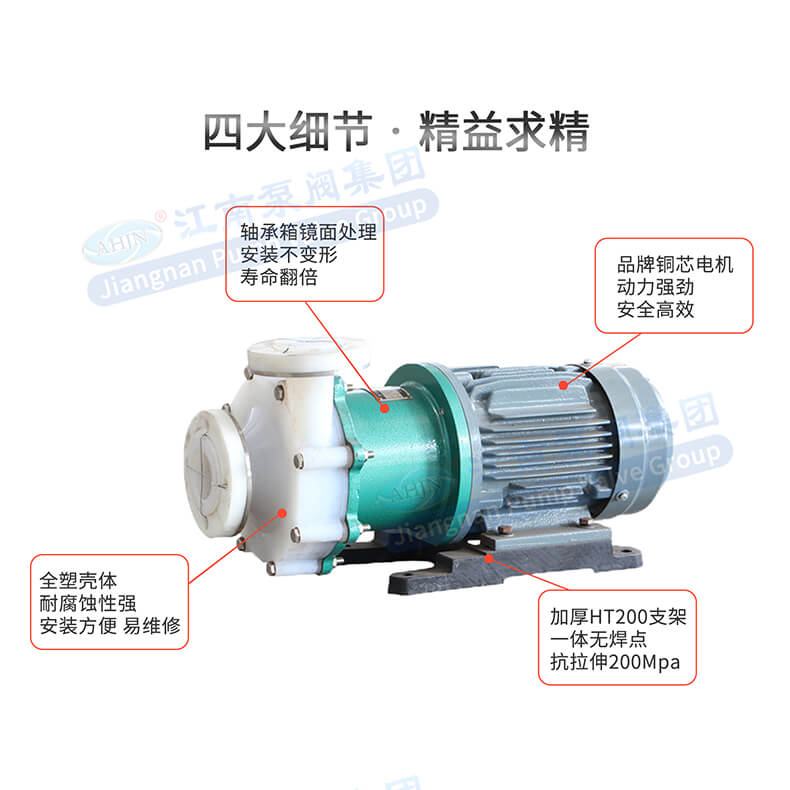 - CQB氟塑料微型磁力泵簡稱為“CQB磁力泵”,采用磁力耦合傳動,不存在動密封點,因此防止了一般軸傳動式離心泵軸封外跑、冒、滴、漏的現(xiàn)象的塑料磁力泵類型。